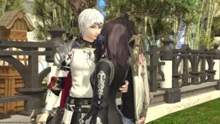 『祈る』ヒューラン♂『棒立ち』or『なだめる』ララフェル♀おでこが触れ合います