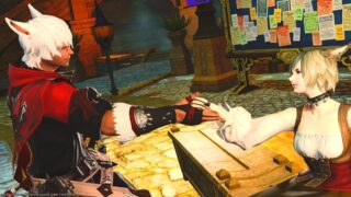 『通常立ち姿』ミコッテ♂『動転する』ミコッテ♂<背中あわせから>SS提供:まろしけ様