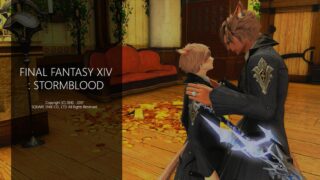 ズッ友 のぞき込む 『ウォームアップ』ヒューラン♂高身長キャラ 最初に屈むところで停止+お好みの表情相手は低身長キャラ 2026.02.14 ズッ友ハイランヒュラヒューランペアペアミコッテペアメスッテ喜楽