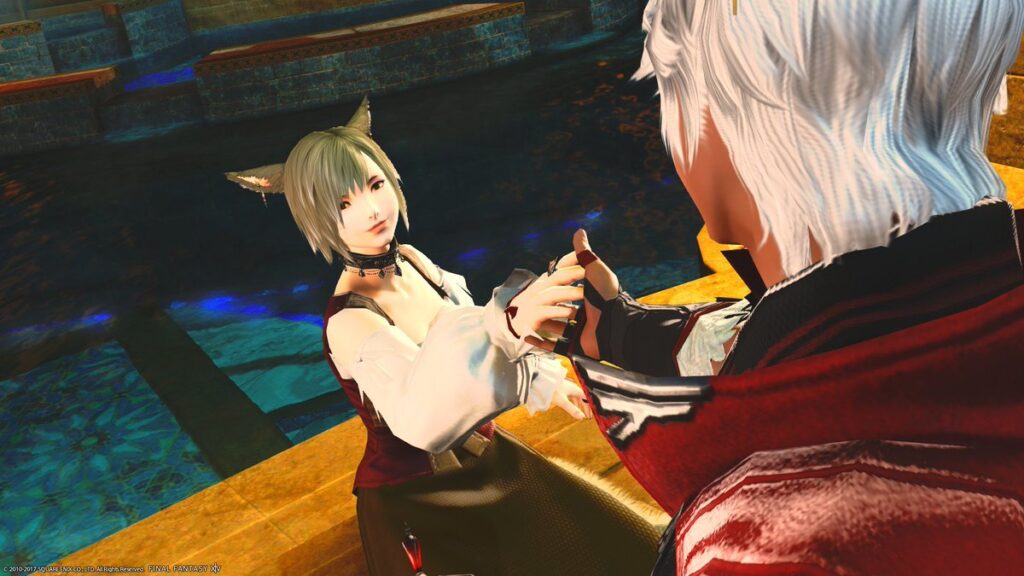 「迎えに来たよ。さ、行こうか」 SNS X Facebook はてブ LINE Pinterest コピー 2026.02.21 『ゴールデンダンス』ミコッテ♂(表情はお好みで)座った状態で『なでる』ミコッテ♀(表情はお好みで) <遠近法による誤魔化しなしのエスコートが味わえます>難しさ エモ止めタイミング:★★★☆☆ 位置調整:★★★★☆ SS提供:Luka’a様