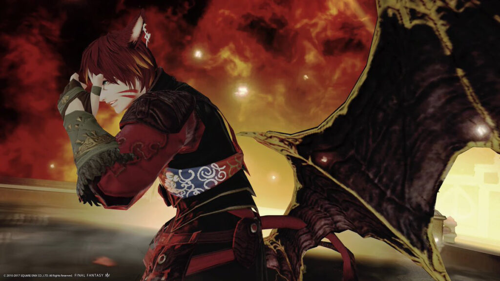 厨二的ポーズ SNS X Facebook はてブ LINE Pinterest コピー 2026.02.27 『大笑い』+『悪巧み』ミコッテ♂ 炎の演出やキラキラで更に厨二っぷり加速! SS提供:まろしけ様