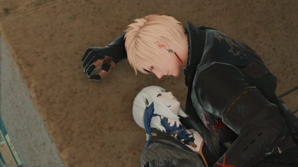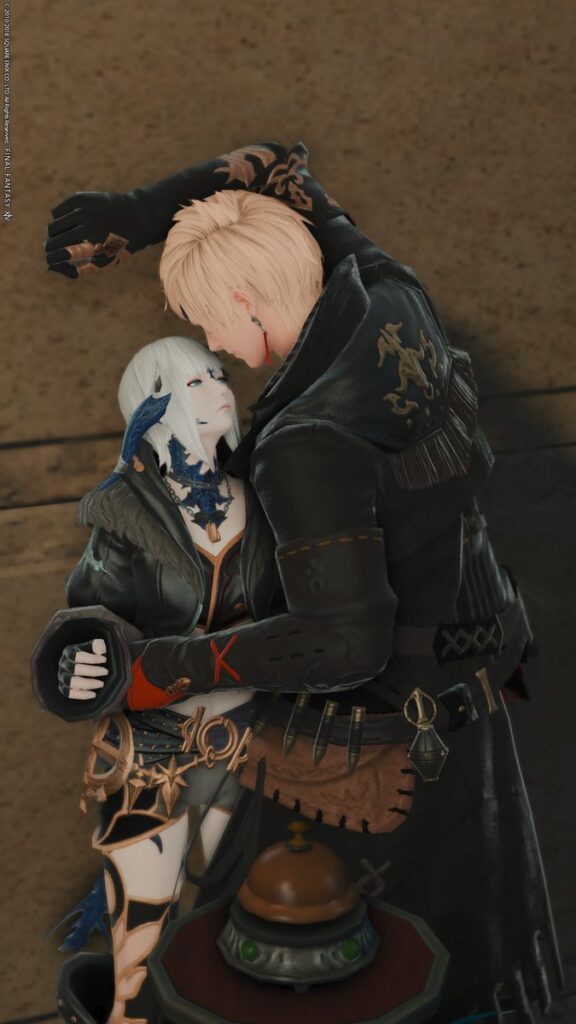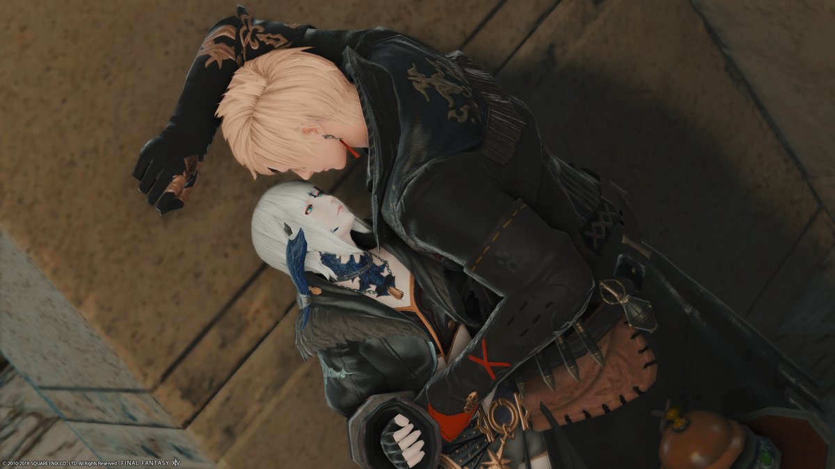 肘ドン アウラペア X Facebook はてブ LINE Pinterest コピー 2026.03.01 『声援:黄』ヒューラン♂『喜ぶ』アウラ♀ ポイントはさりげなく腰に手を回してるっぽいのとその腕に手にそえるのが良い SS提供:Ib Schenly様,K様